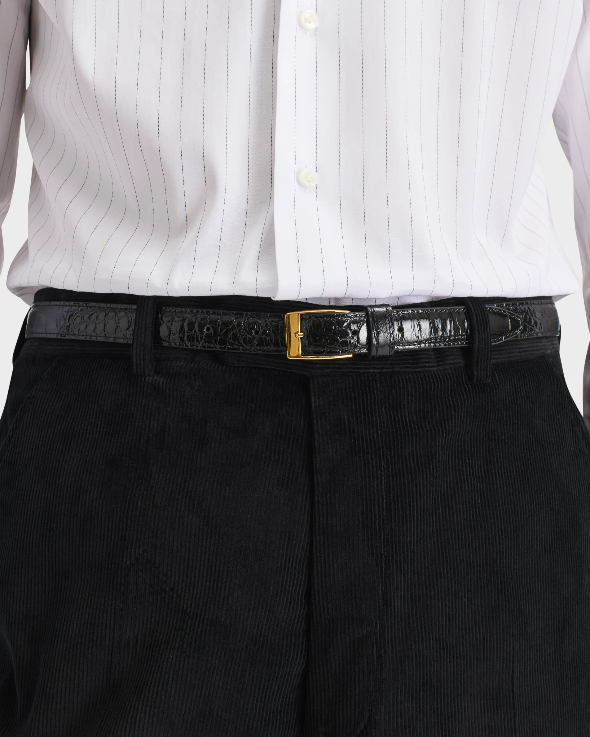 Ceinture fine en cuir de veau italien embossé façon crocodile.
