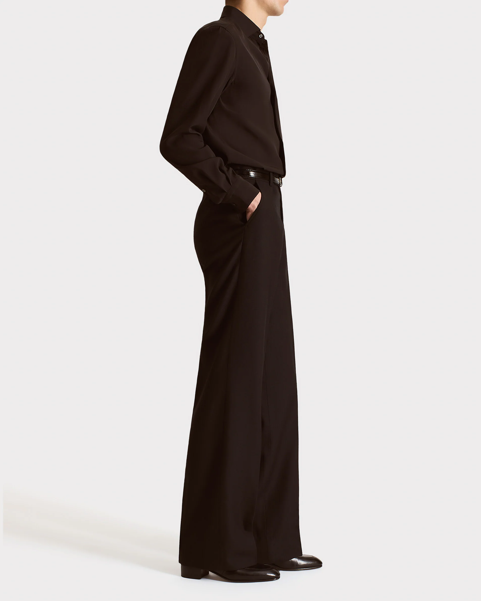 CHEMISE COL CLASSIQUE EN CRÊPE DE SOIE - CHOCOLAT FONCÉ
