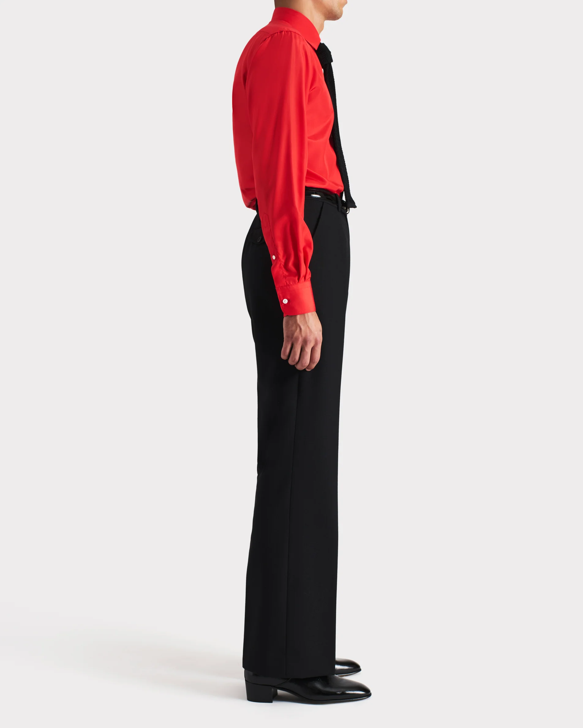 Chemise à col classique, coupe classique, en popeline de soie italienne.