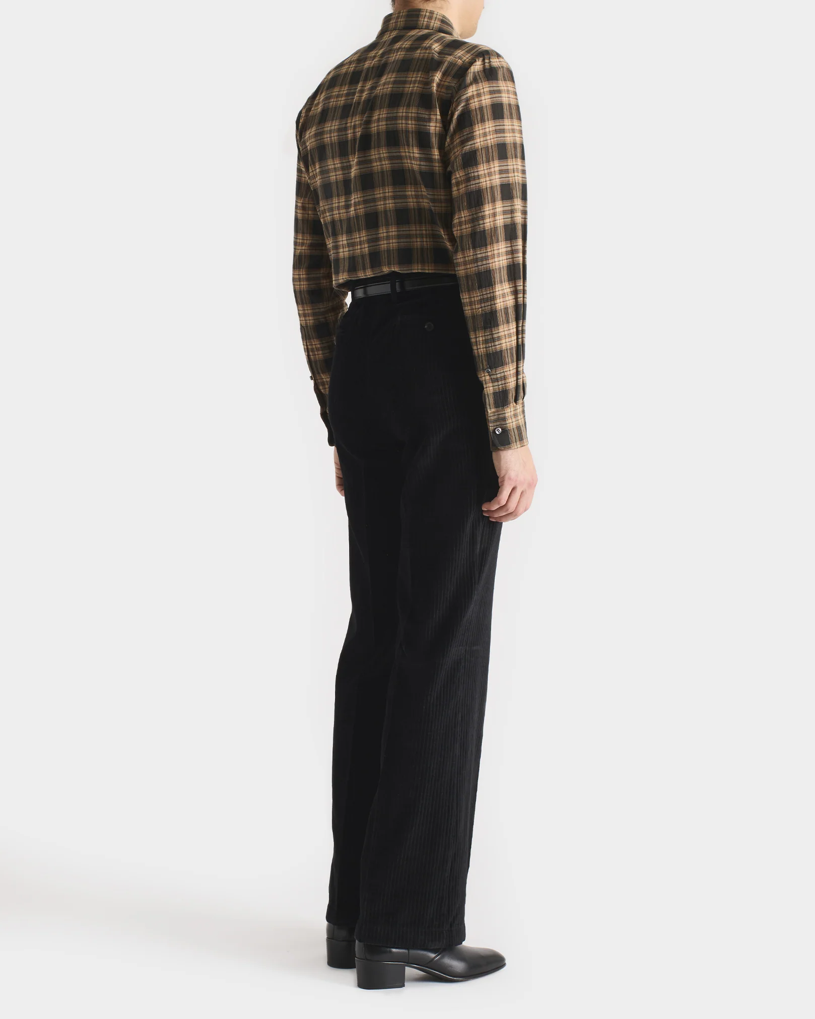 CHEMISE COL CLASSIQUE EN VOILE DE COTON - TAUPE FONCÉ ET CARREAUX BEIGE