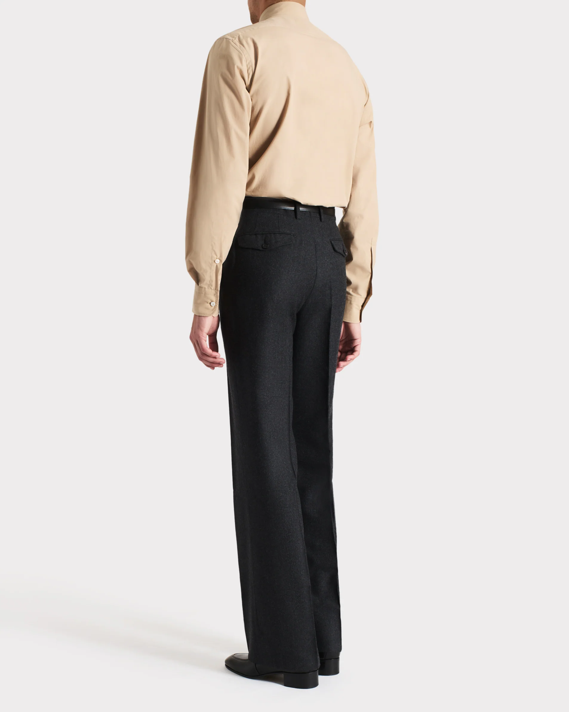 Chemise col large, coupe classique, en popeline de coton japonais.