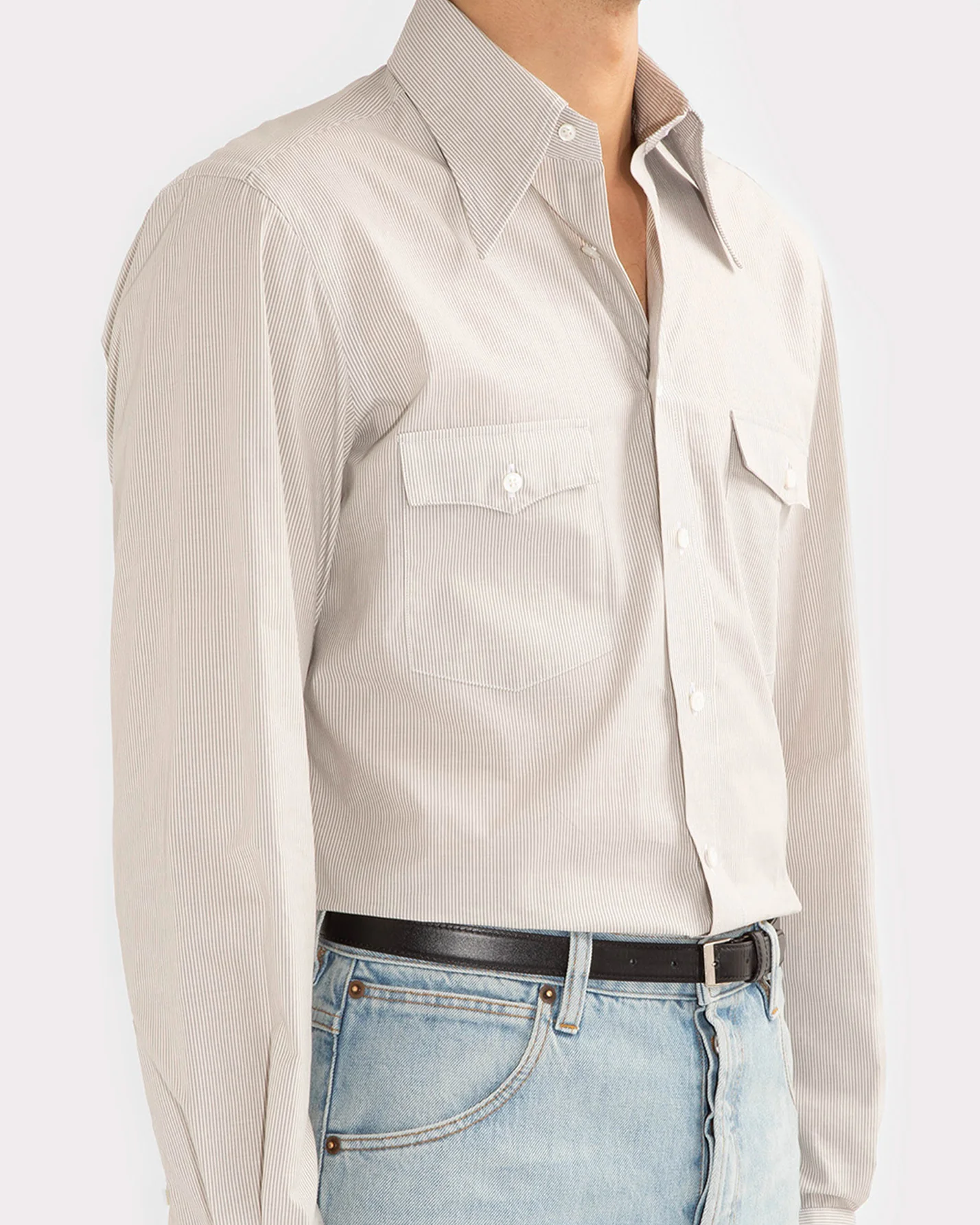 CHEMISE COL LARGE EN POPELINE DE COTON - RAYURES GRISES ET BLANCHES