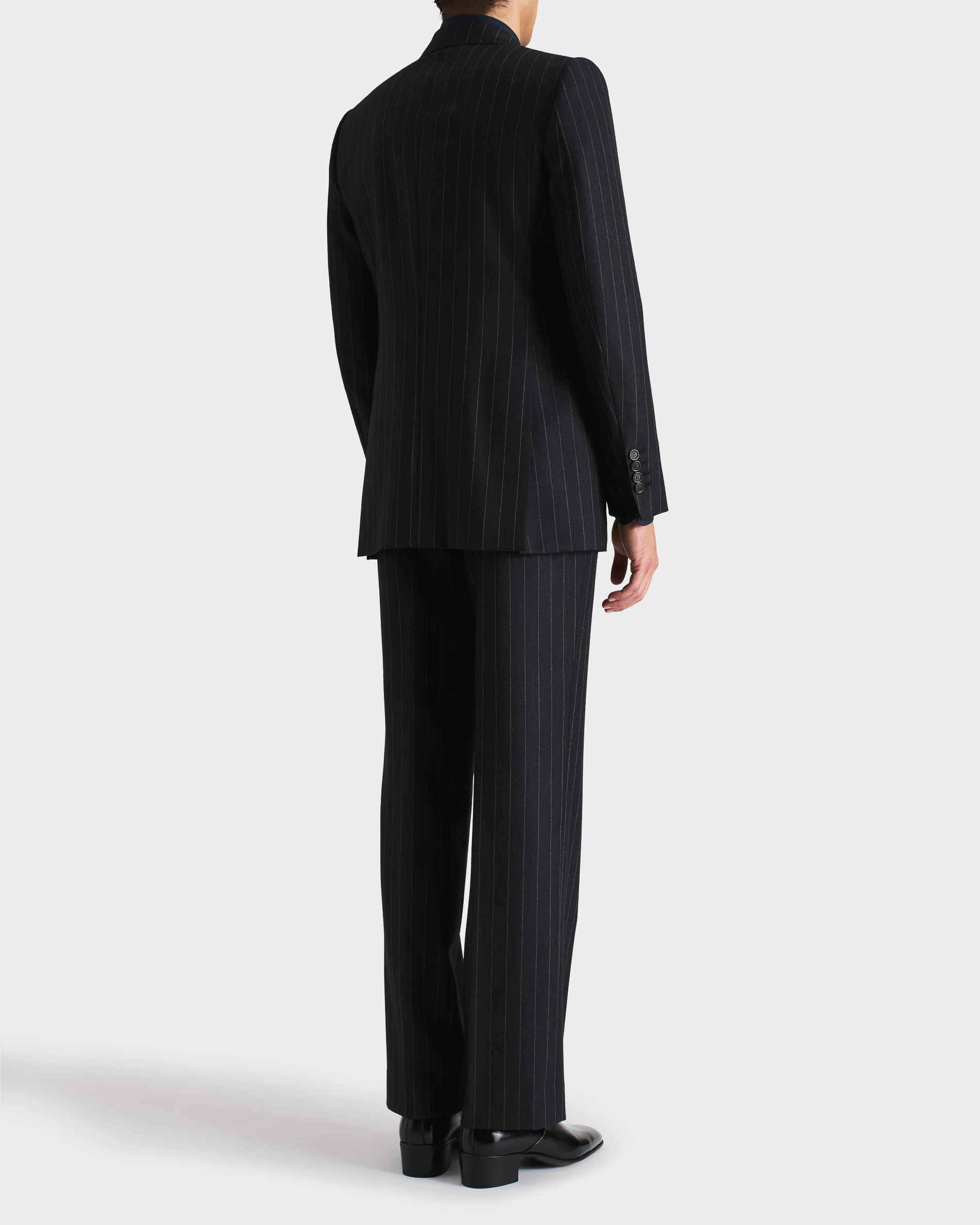 COSTUME DROIT EN SERGÉ DE LAINE PEIGNÉE - ANTHRACITE À RAYURES GRISES