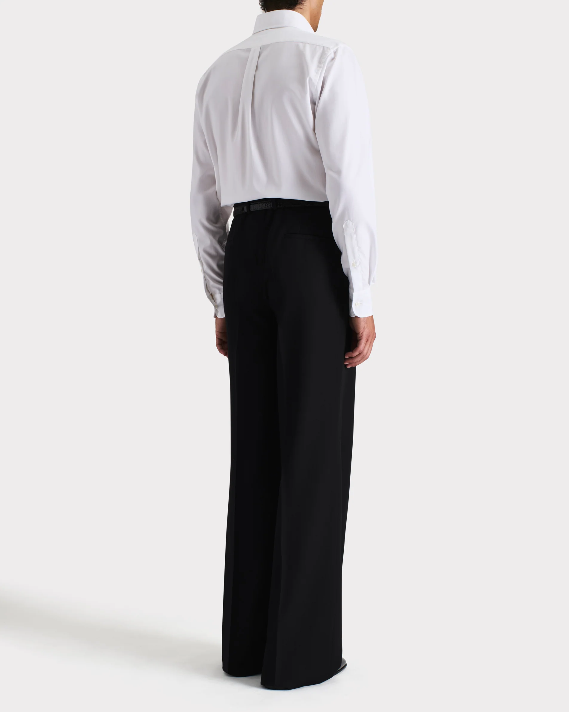 PANTALON LARGE À PLIS EN GABARDINE DE LAINE - NOIR